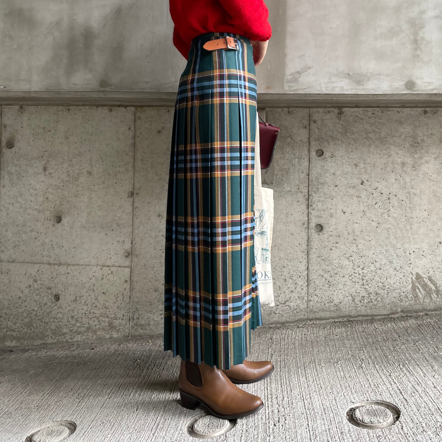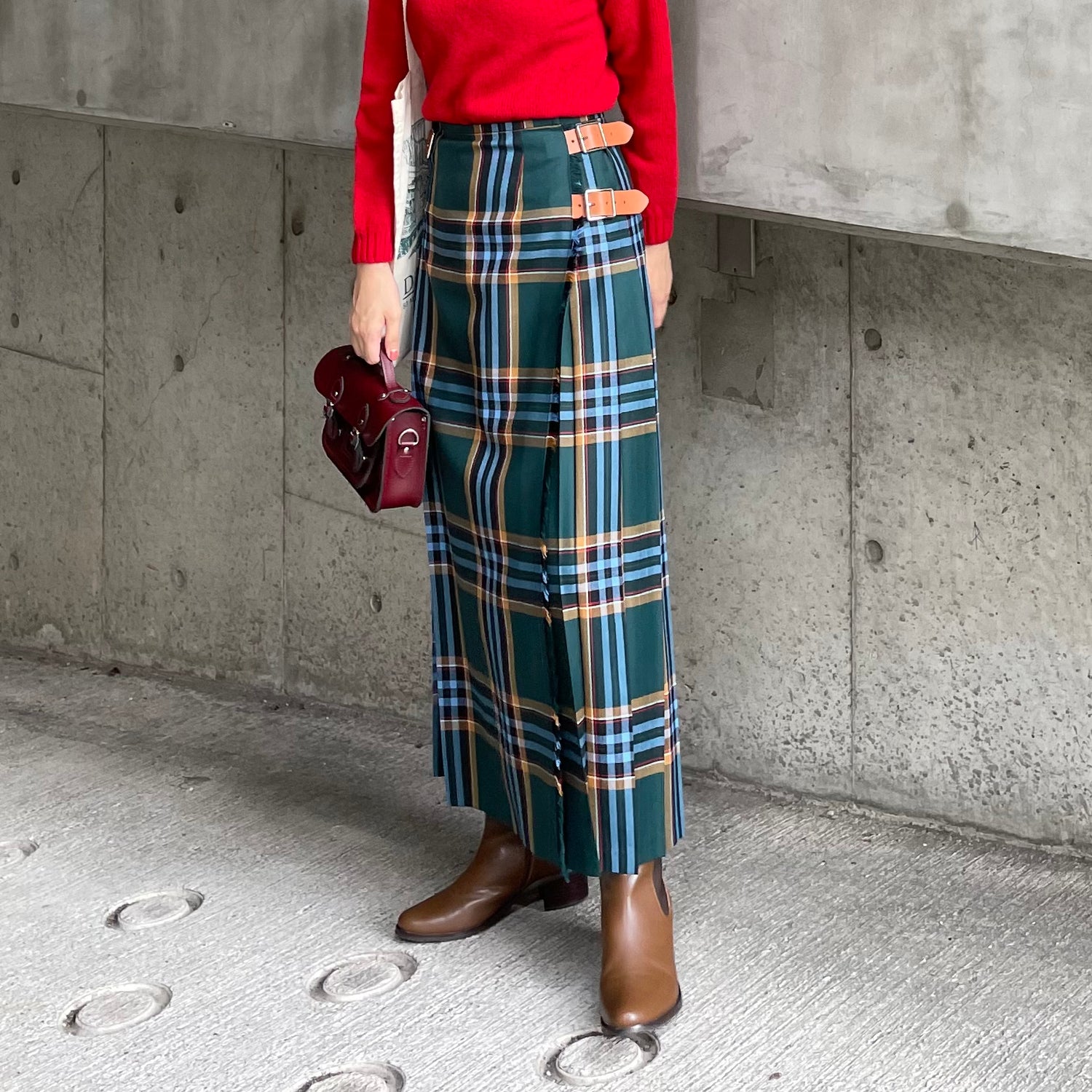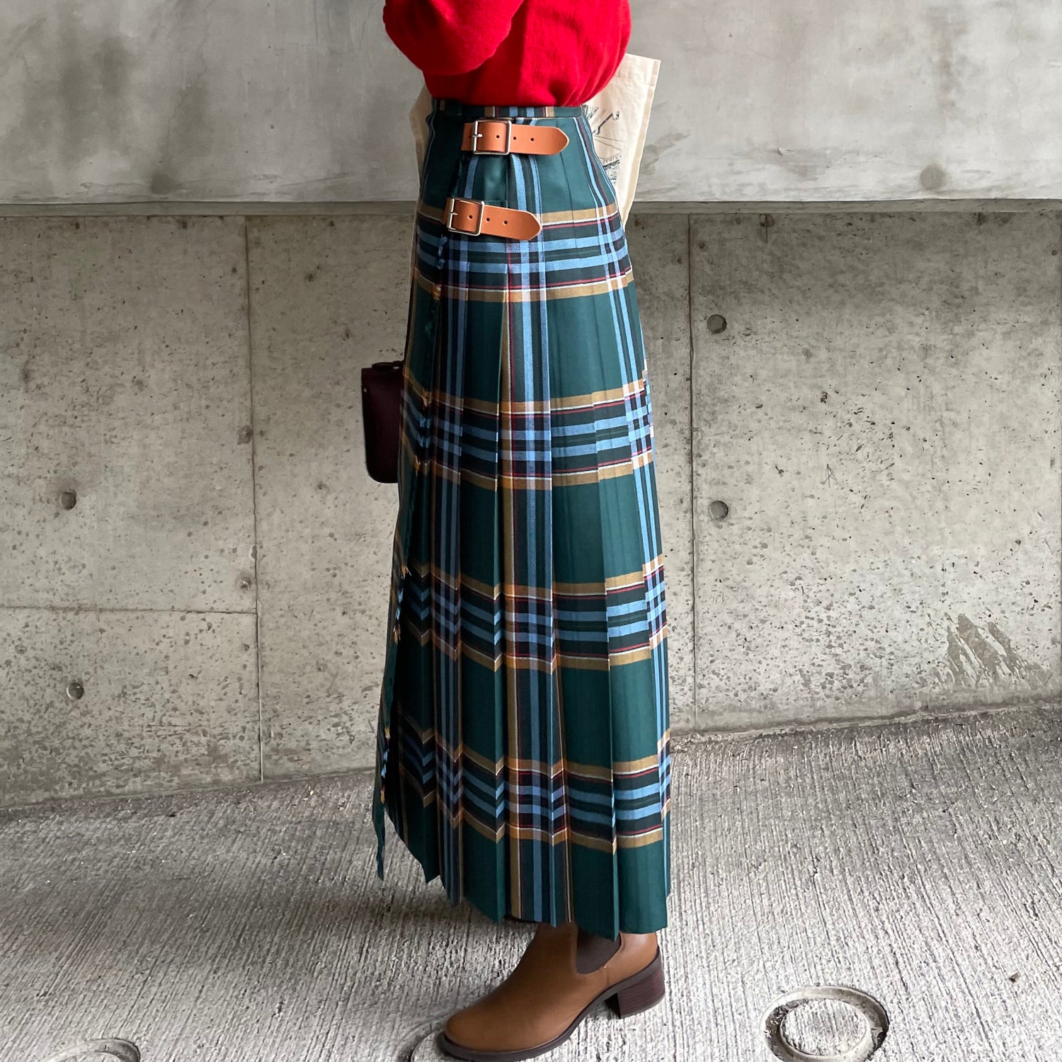 流行りに左右されないクラシカルなキルトスカートは、継ぎ目がない1枚仕立ての贅沢な仕様で、生地をベルトで留めて着る伝統的なデザイン。
