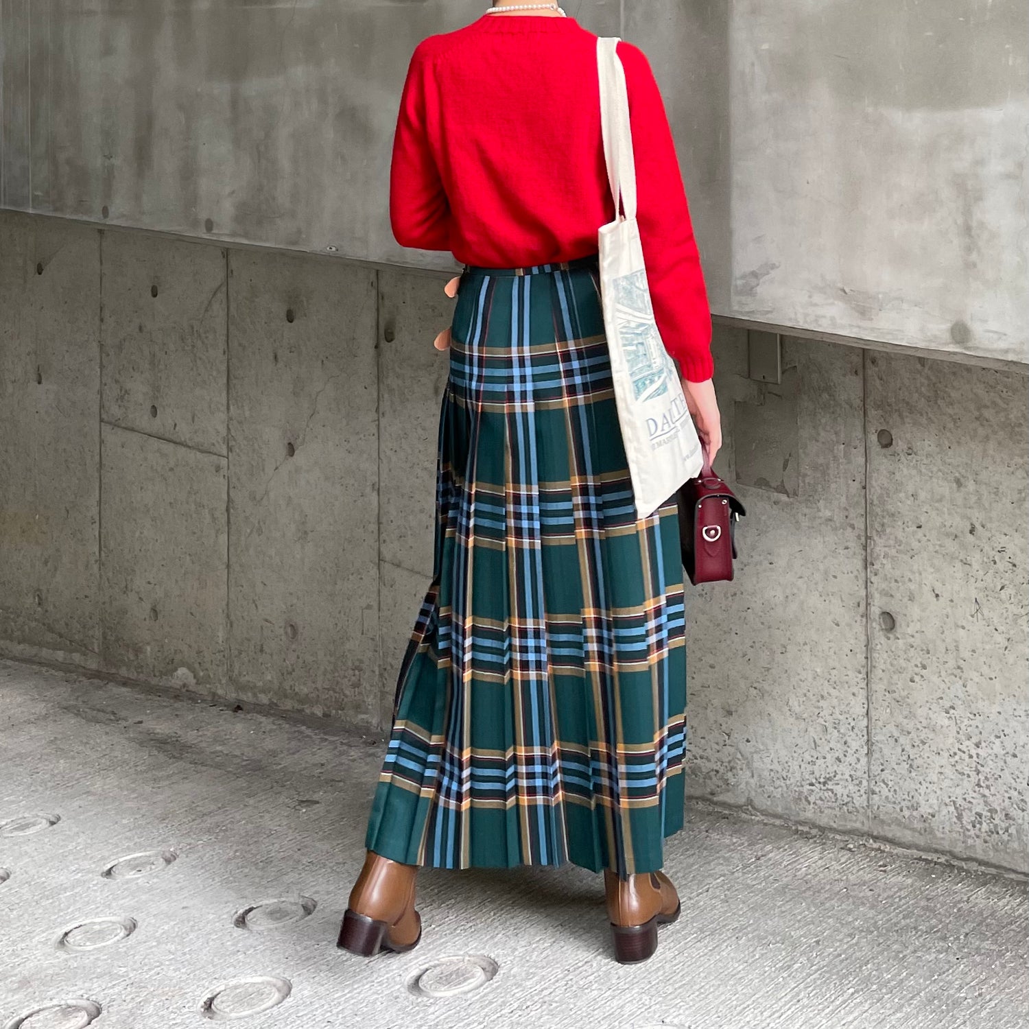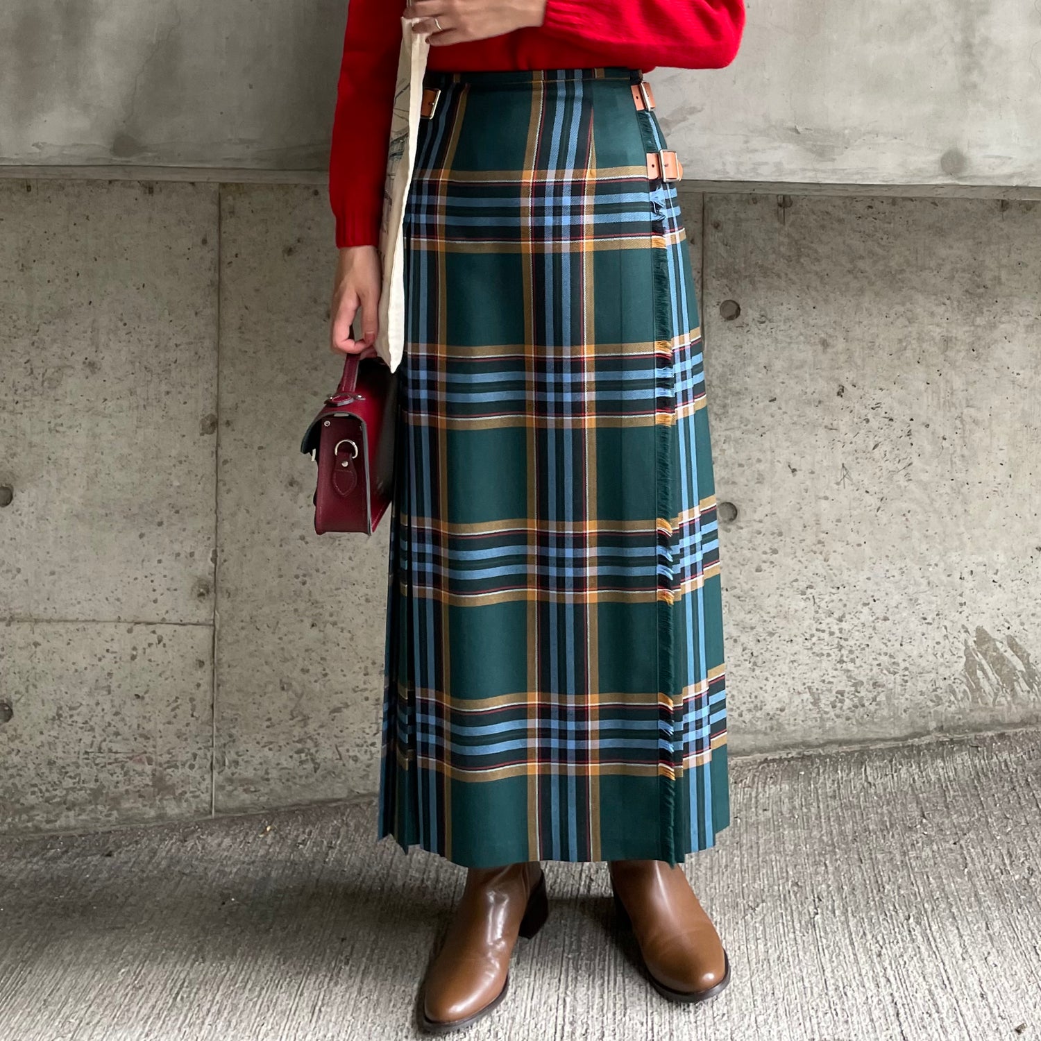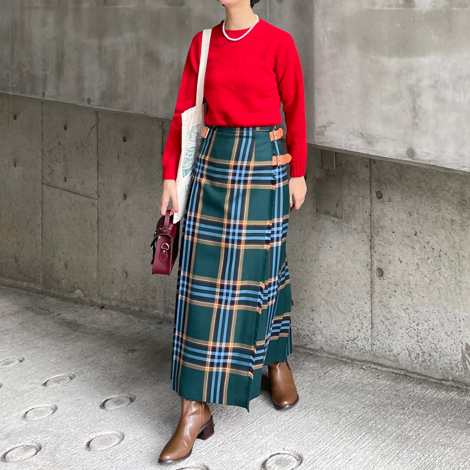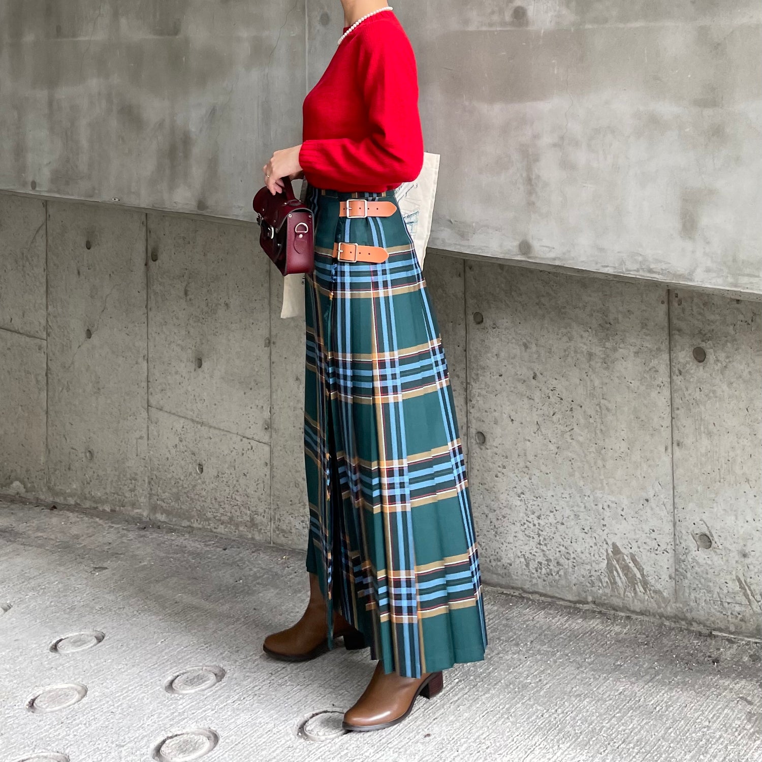 流行りに左右されないクラシカルなキルトスカートは、継ぎ目がない1枚仕立ての贅沢な仕様で、生地をベルトで留めて着る伝統的なデザイン。