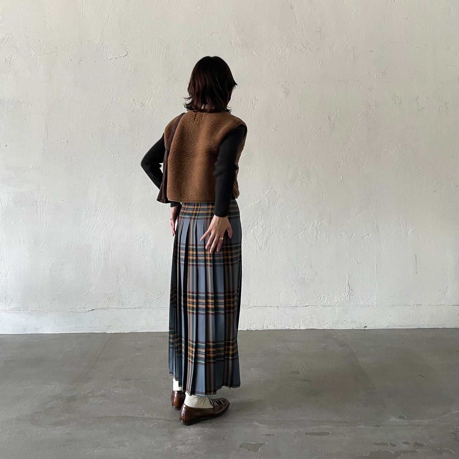 流行りに左右されないクラシカルなキルトスカートは、継ぎ目がない1枚仕立ての贅沢な仕様で、生地をベルトで留めて着る伝統的なデザイン。