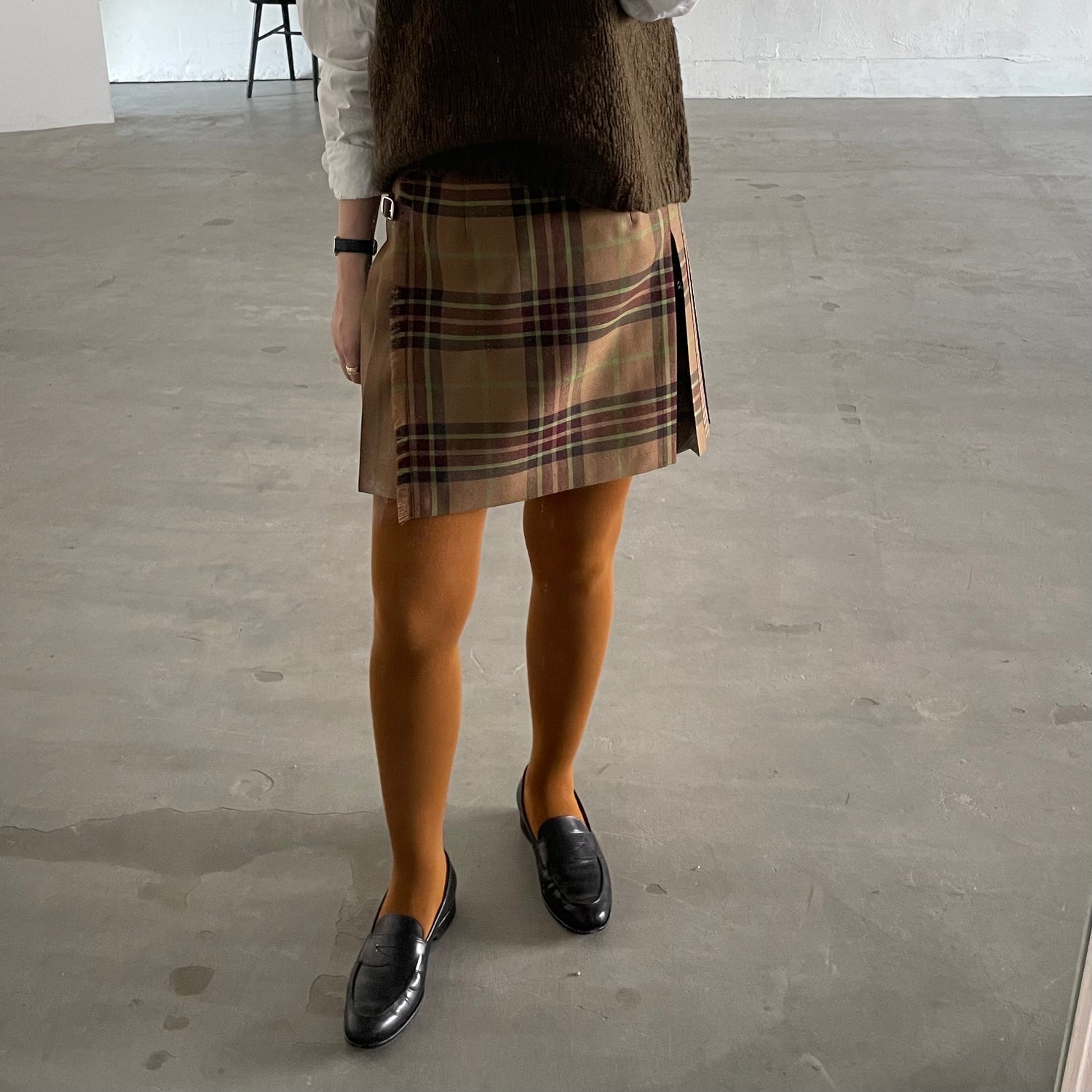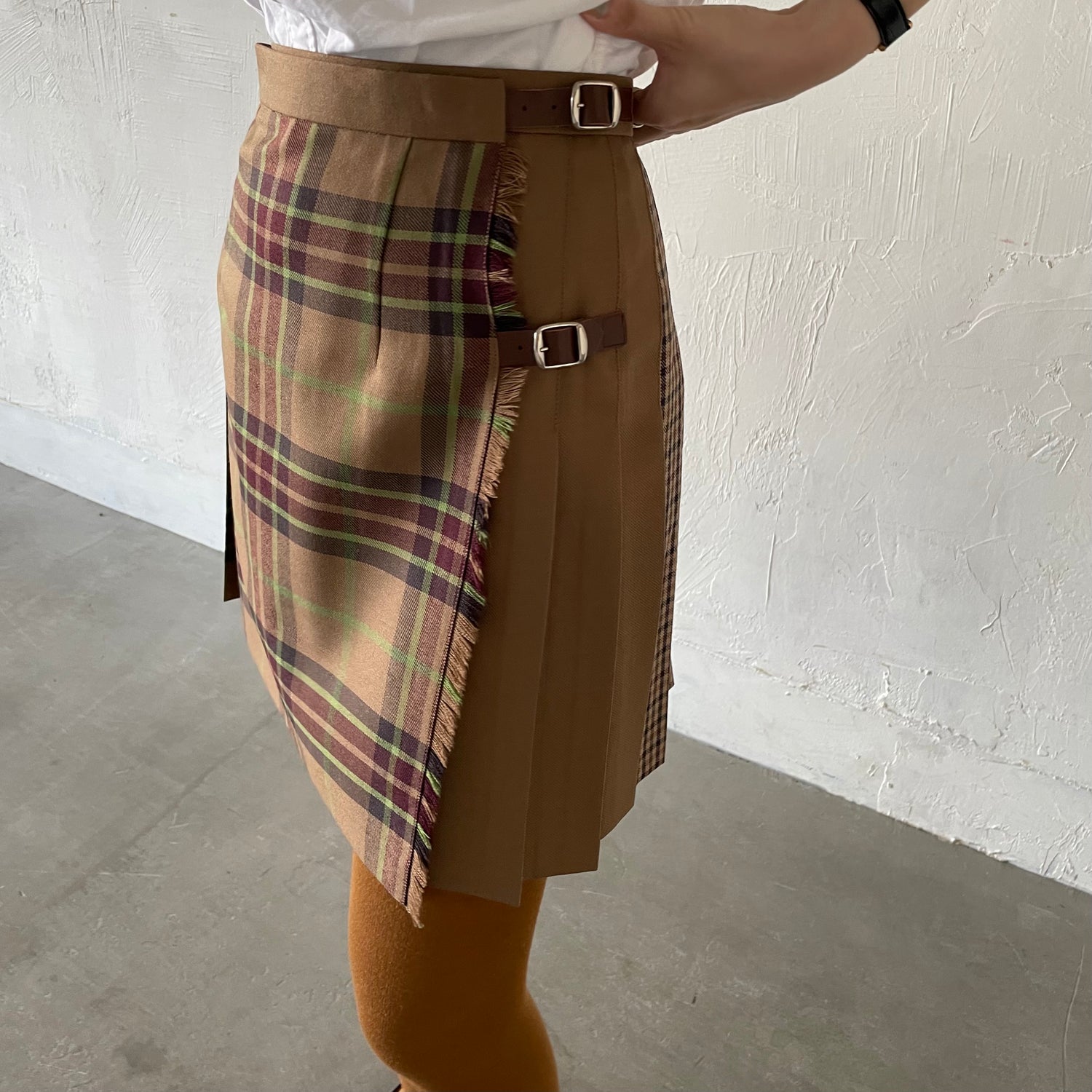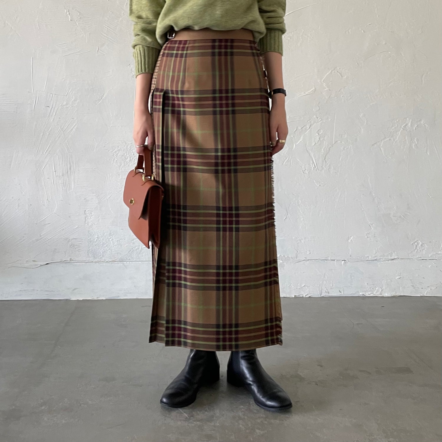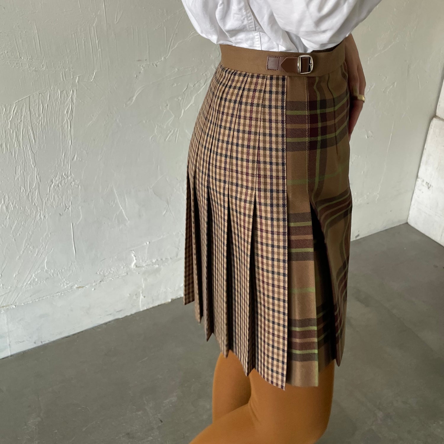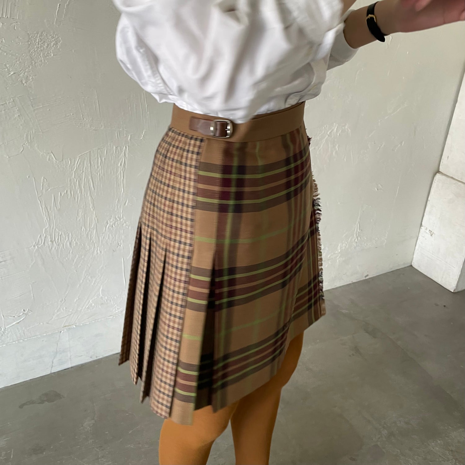 流行りに左右されないクラシカルなキルトスカートは、継ぎ目がない1枚仕立ての贅沢な仕様で、生地をベルトで留めて着る伝統的なデザイン。