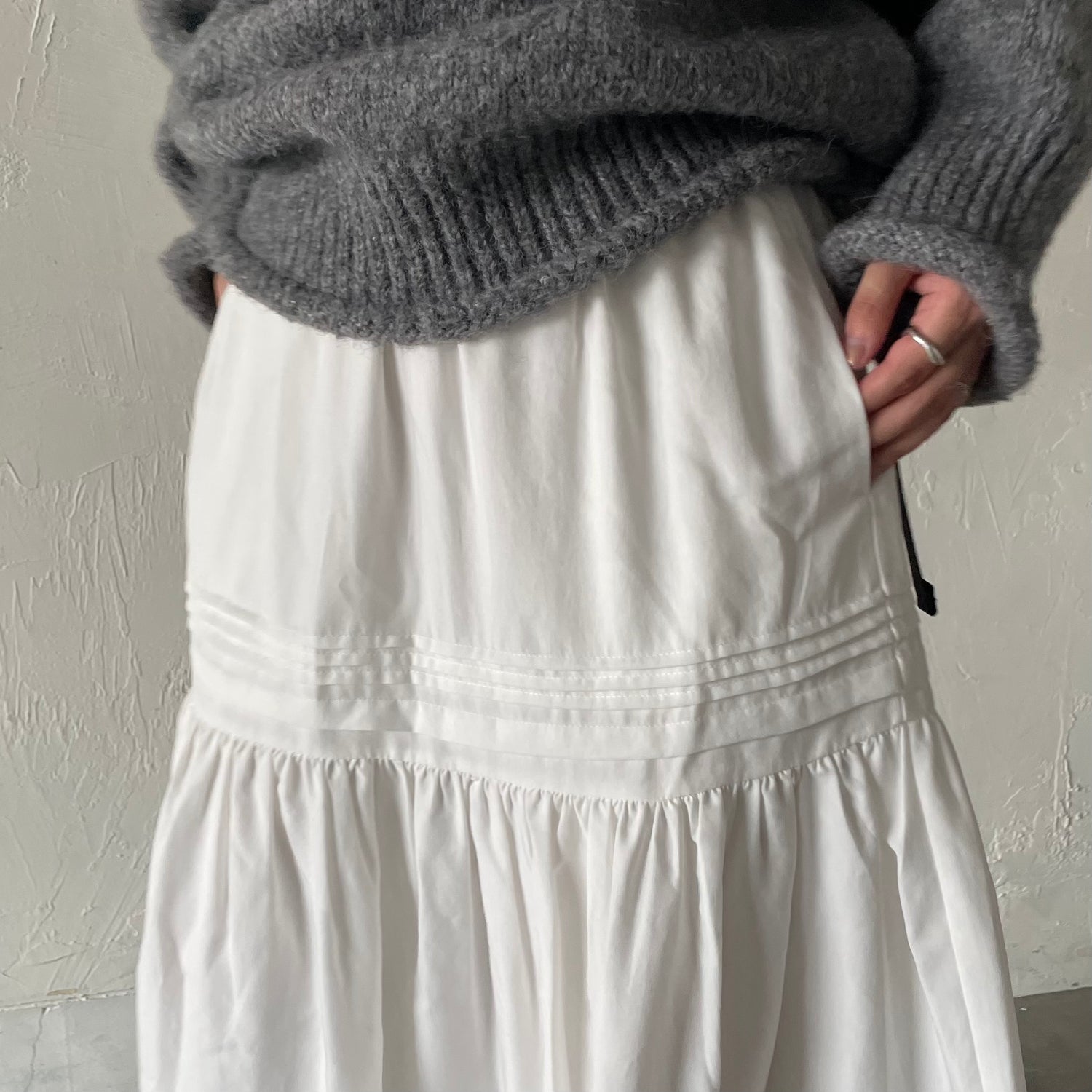 裾にたっぷりと取ったタックが生み出すボリューム感が贅沢なフレアスカート。