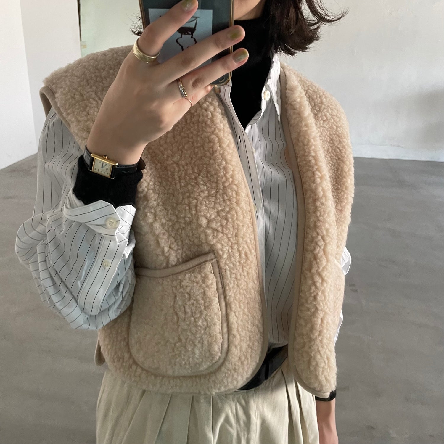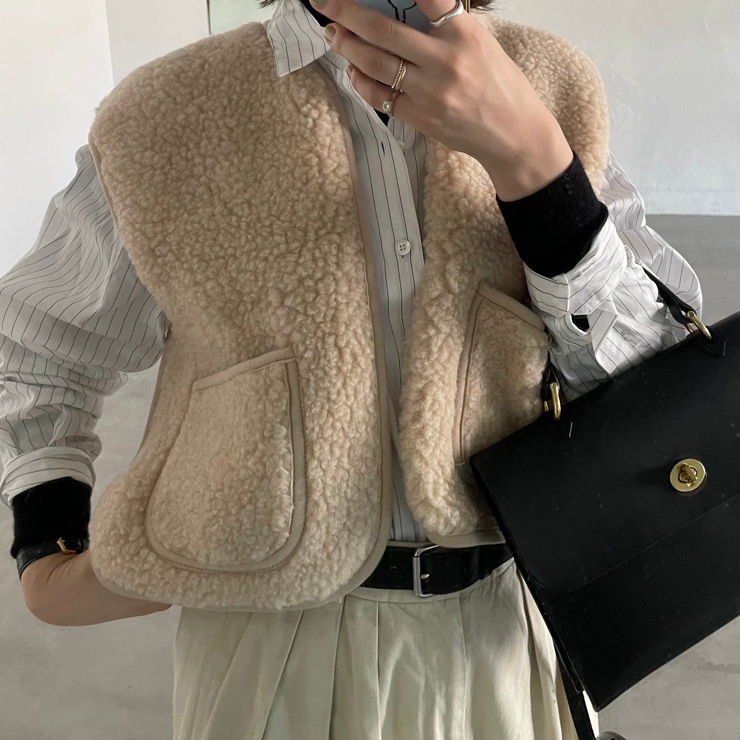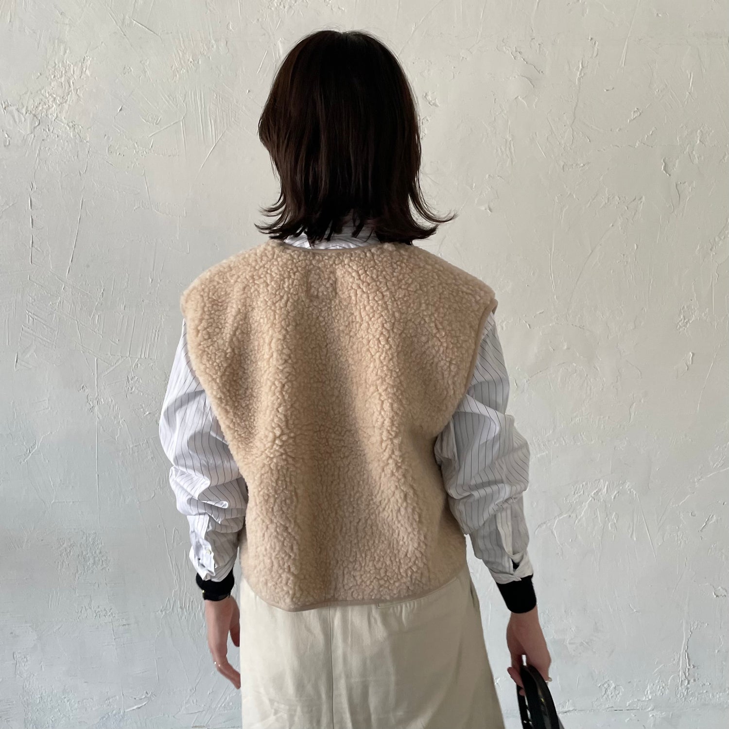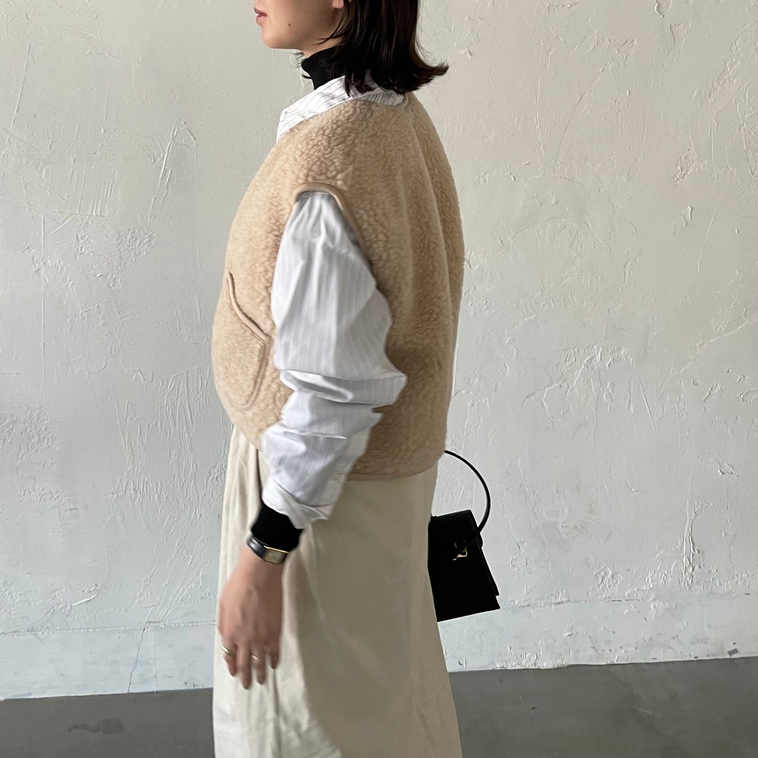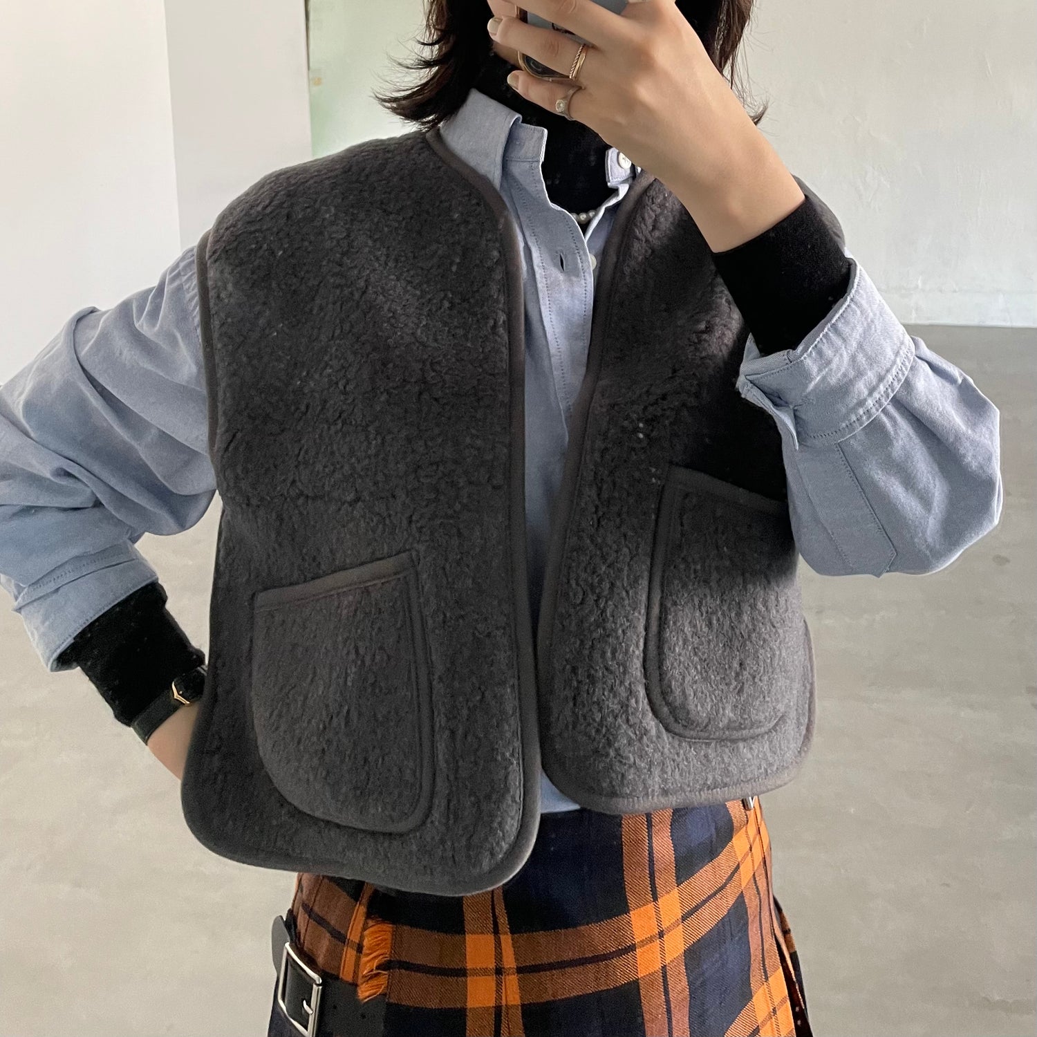 やわらかなパイルウールが心地よく、軽やかな着心地のショート丈ベスト。