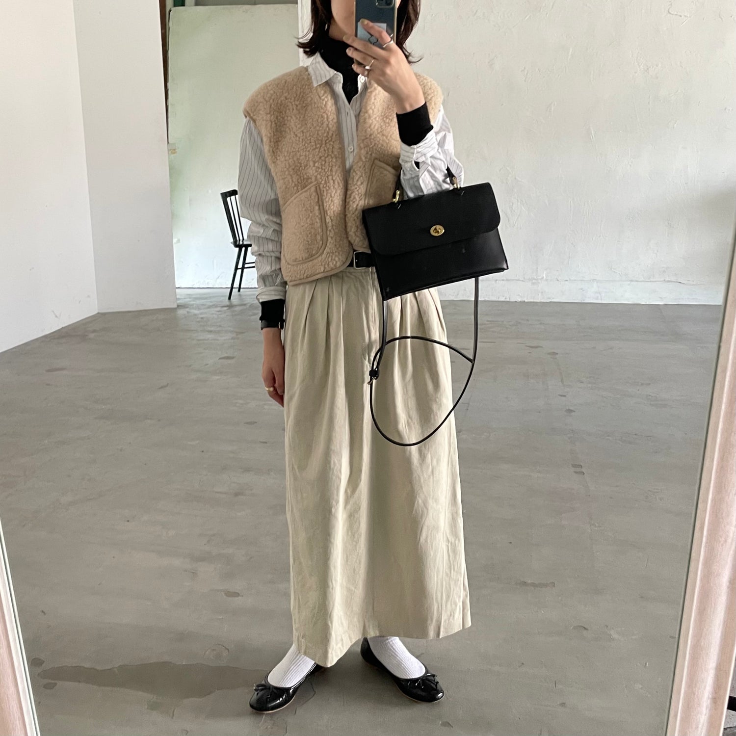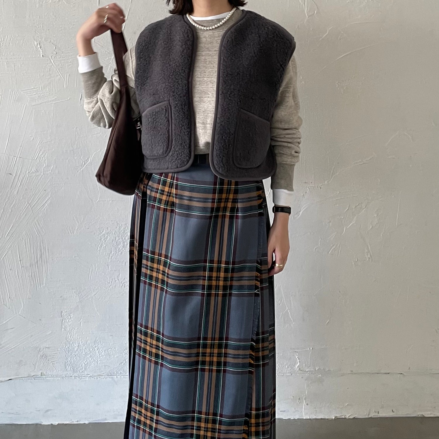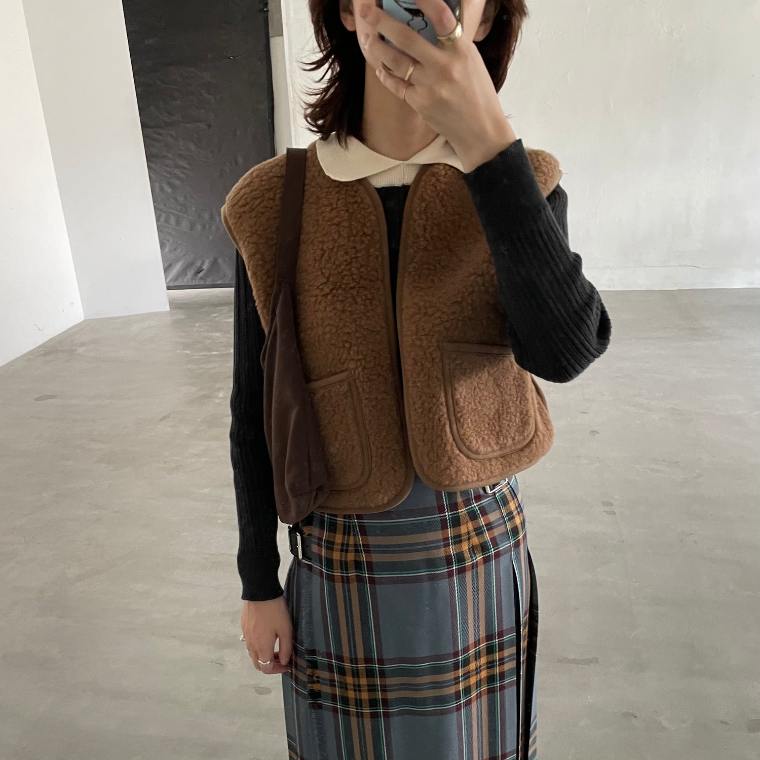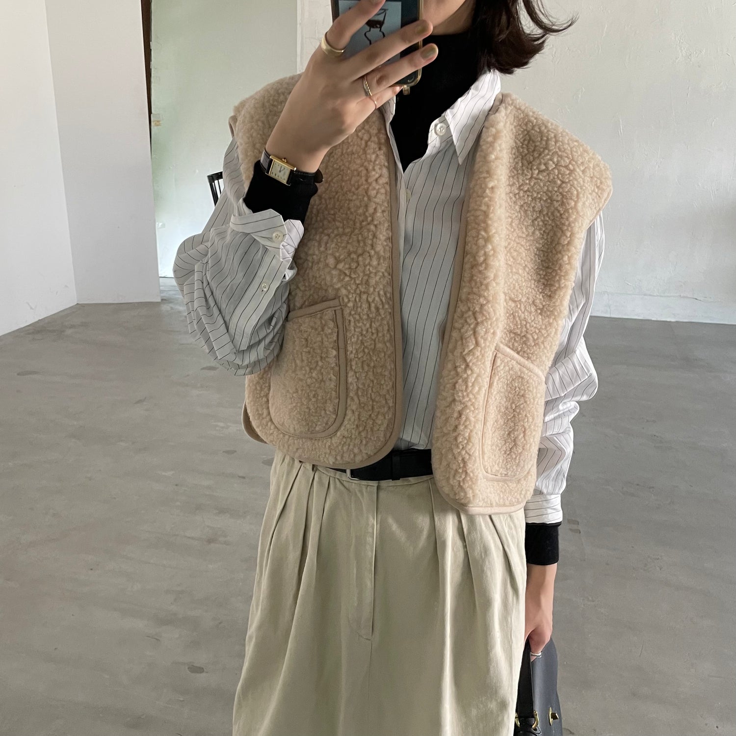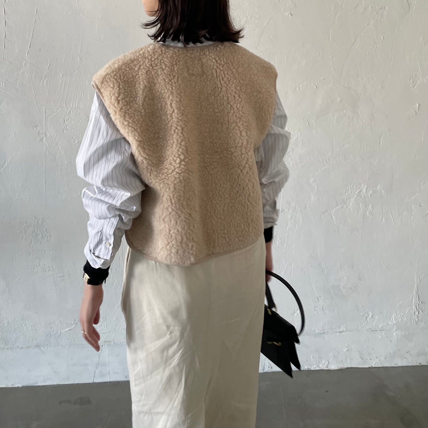 やわらかなパイルウールが心地よく、軽やかな着心地のショート丈ベスト。