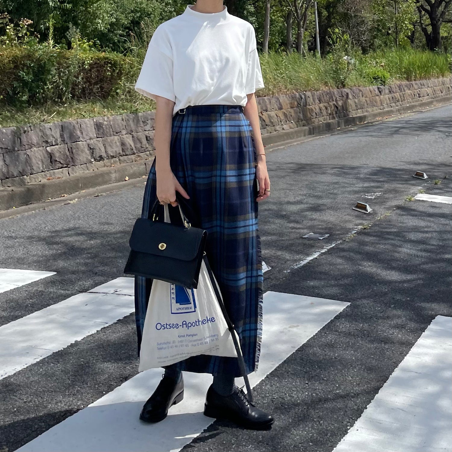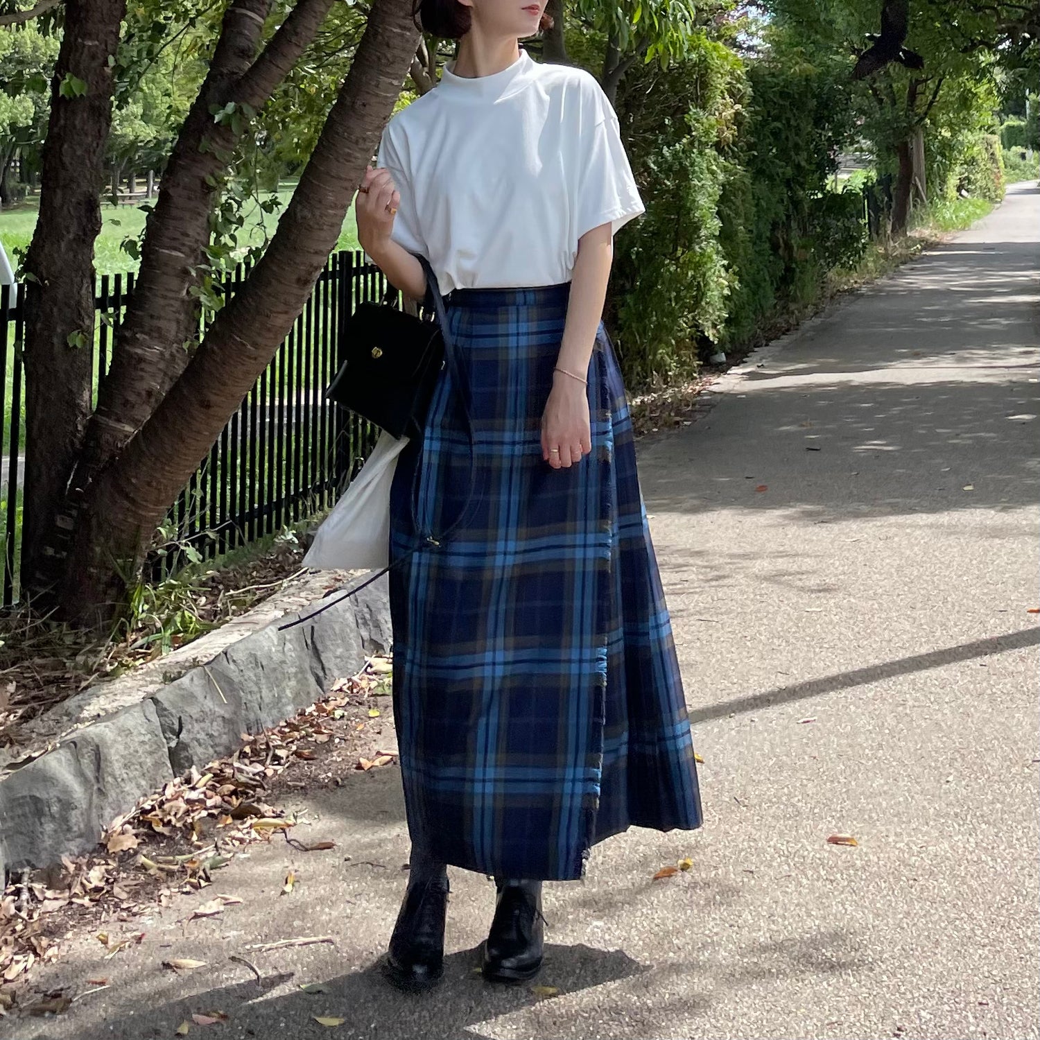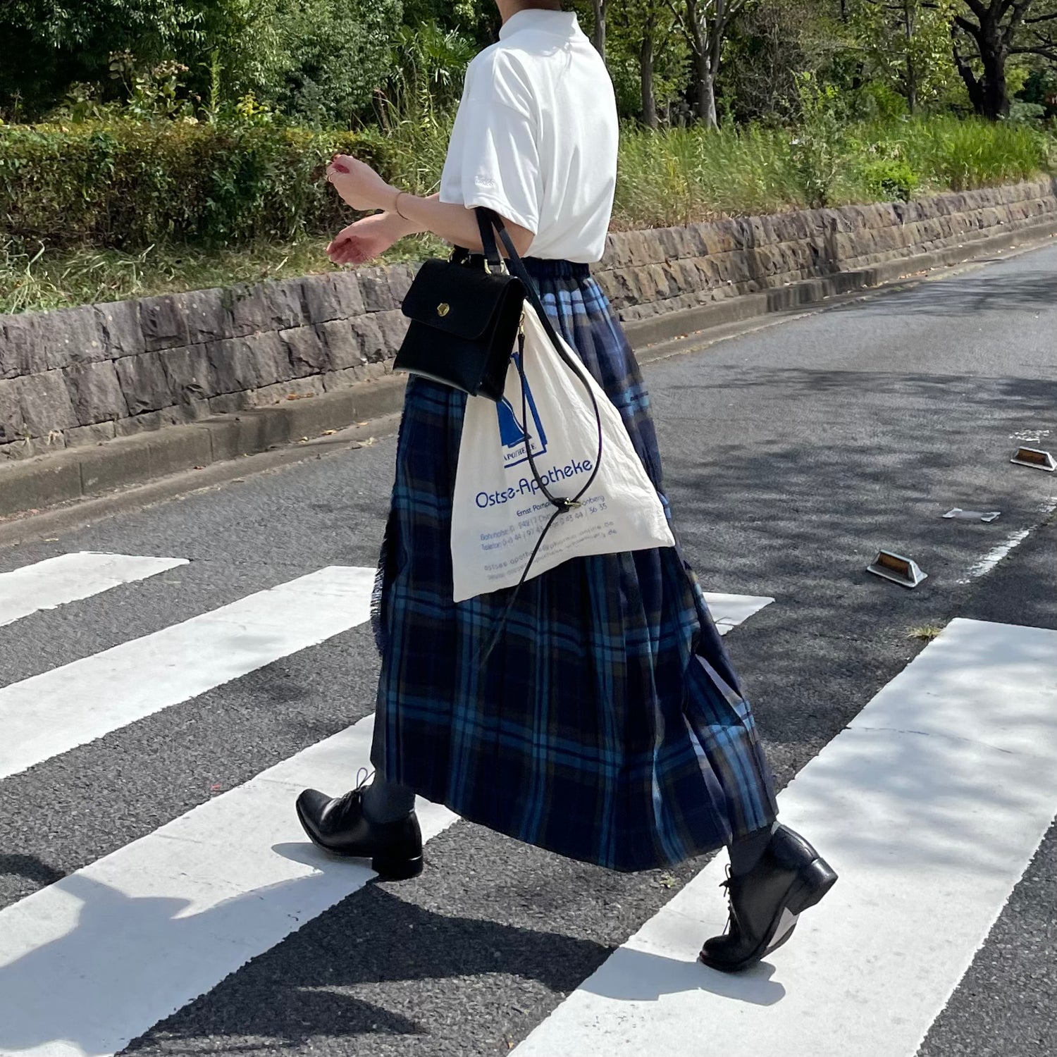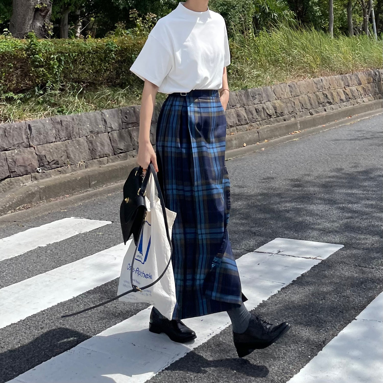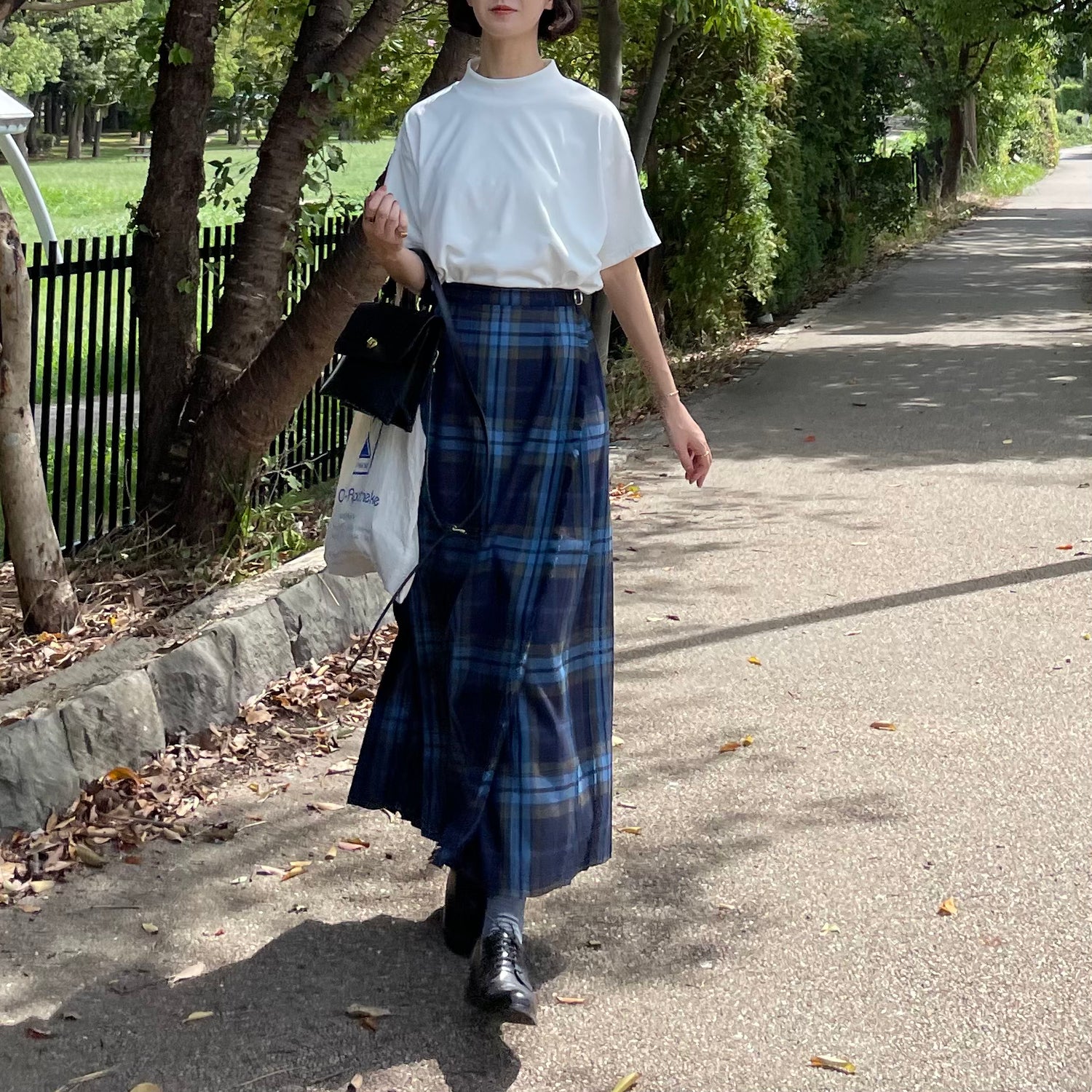 ブルーがメインの配色なのでカジュアルなアイテムにも合わせやすく普段パンツスタイルが多い方もお手持ちのアイテムと合わせやすい柄です。