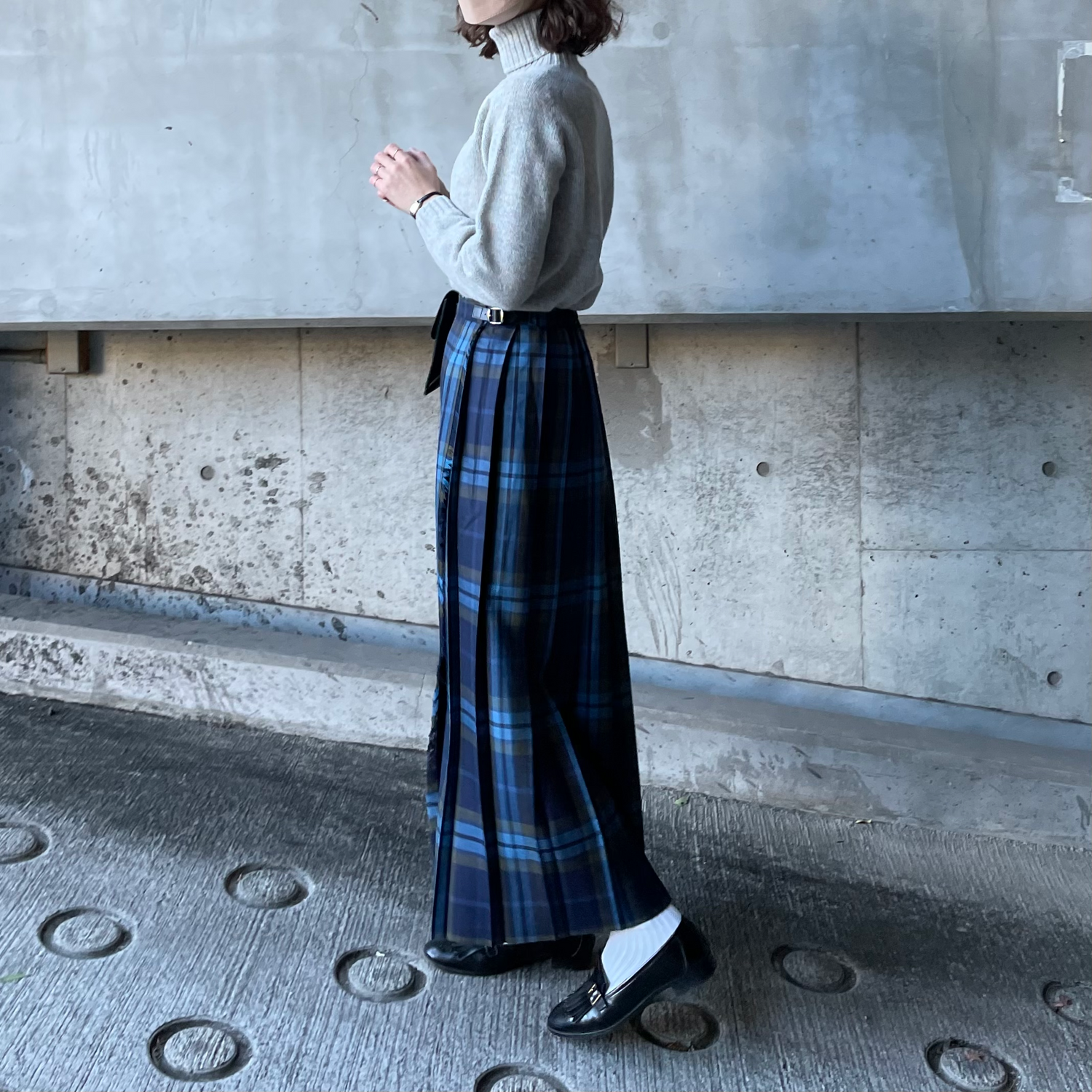 流行りに左右されないクラシカルなキルトスカートは、継ぎ目がない1枚仕立ての贅沢な仕様で、生地をベルトで留めて着る伝統的なデザイン。