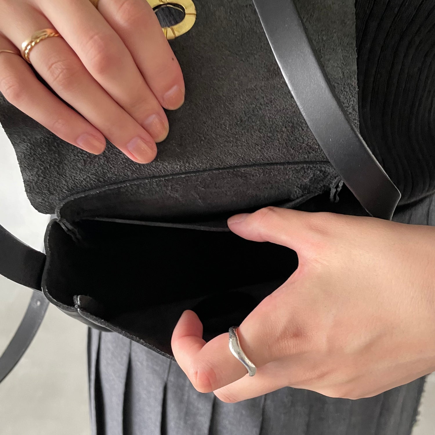 ストラップは3段階で長さ調節が可能なので、コーデやシーンに合わせてバランス良く持ち歩けます。