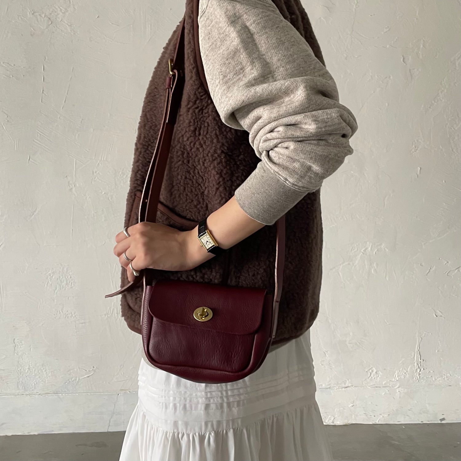 クラシカルなスタイルはもちろん、カジュアルや普段使いにもよく合うショルダーバッグ。