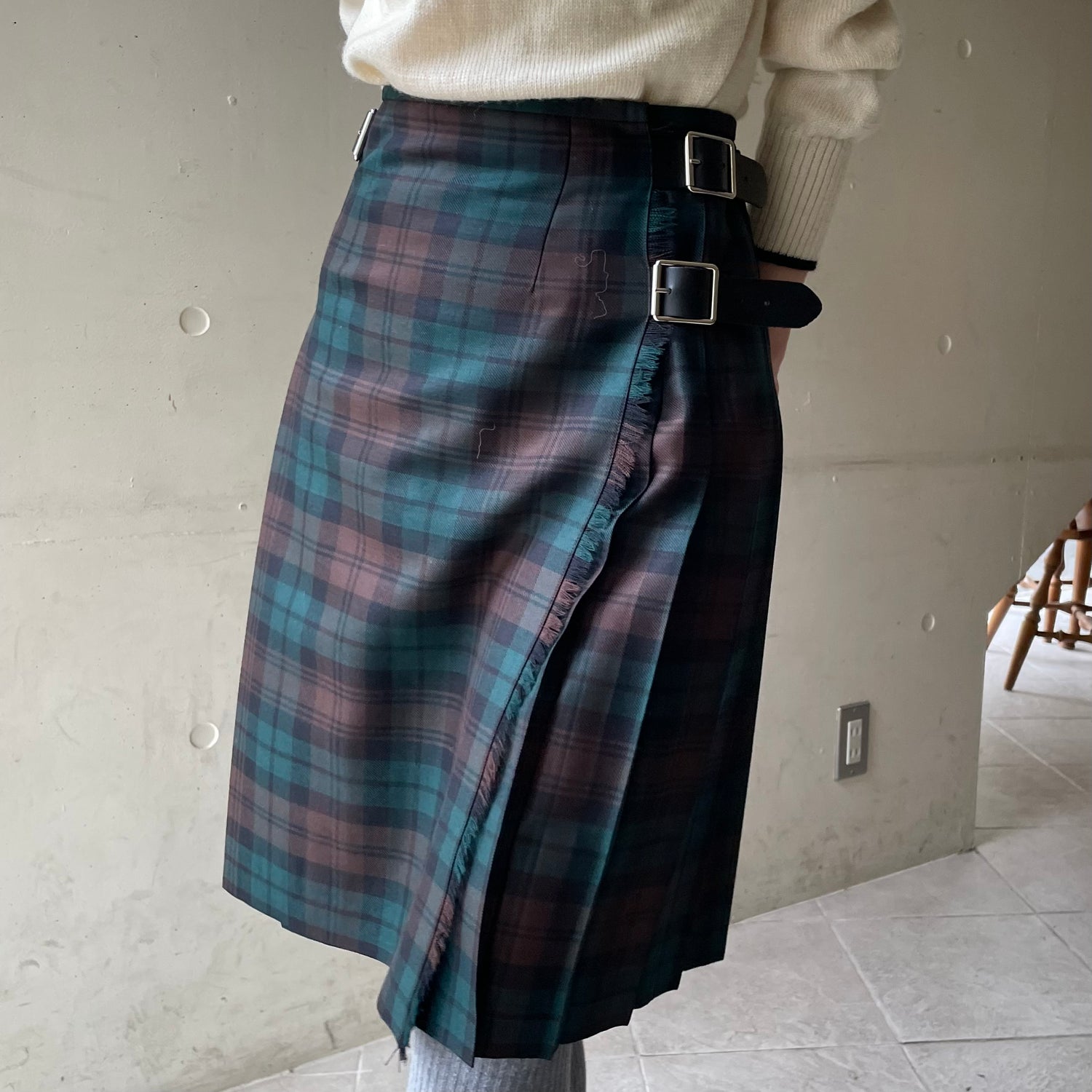 流行りに左右されないクラシカルなキルトスカートは、継ぎ目がない1枚仕立ての贅沢な仕様で、生地をベルトで留めて着る伝統的なデザイン。