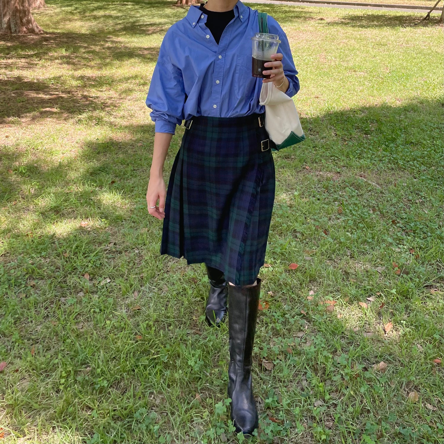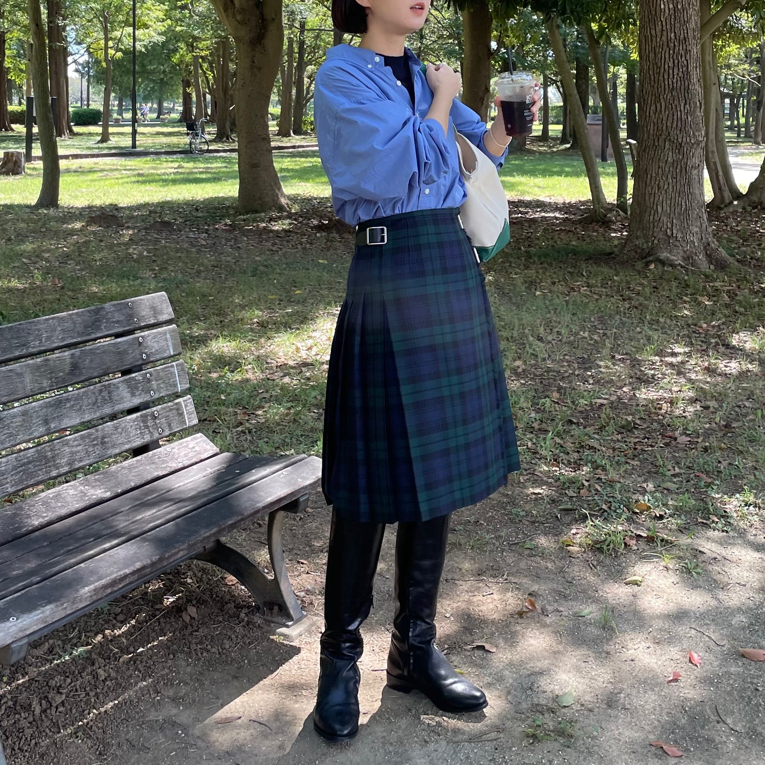 流行りに左右されないクラシカルなキルトスカートは、継ぎ目がない1枚仕立ての贅沢な仕様で、生地をベルトで留めて着る伝統的なデザイン。