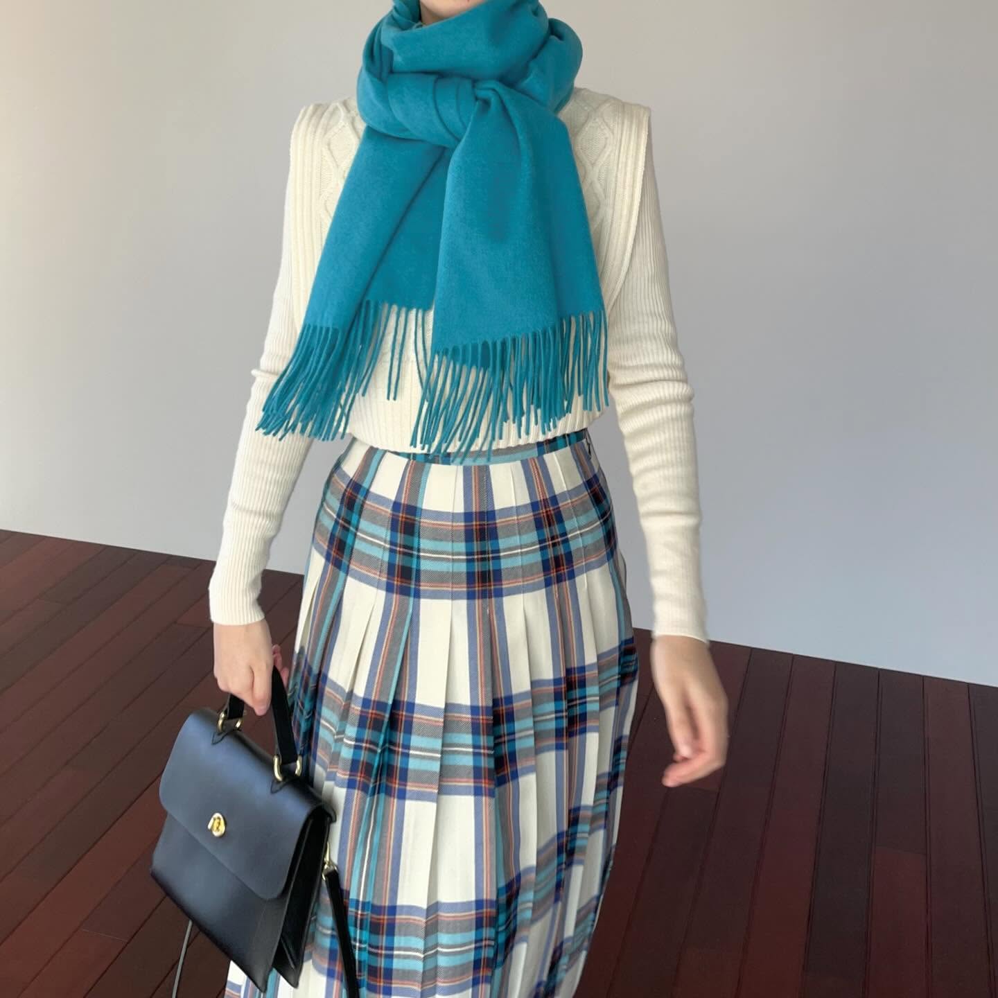 シンプルなトップスを合わせていただくだけで様になるアイテム。重くなりがちな秋冬コーデに投入していただくと、コーデがグッと華やかになります。