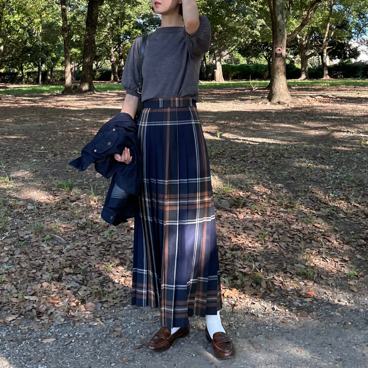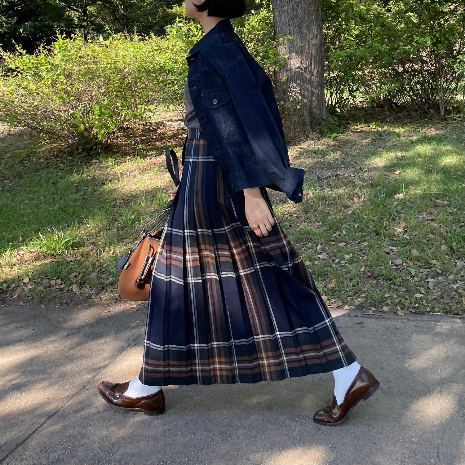 オニールオブダブリンのスカートといえば、サイドのベルト付きのものが多い気がしますが、こちらは全面プリーツのタイプのスカートです。
