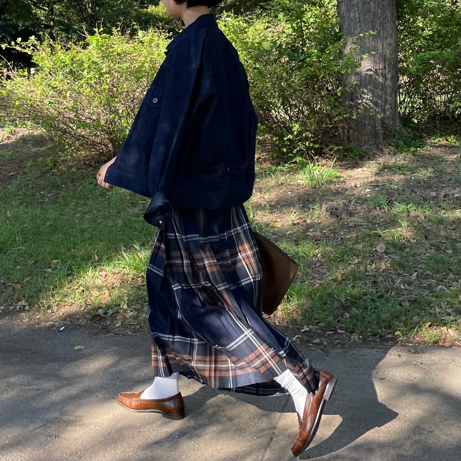 大柄のチェックのため生地の裁断箇所により柄が1点ごとに異なります。